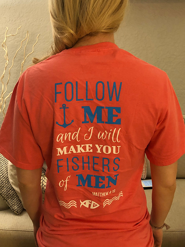 Fish Driven Cotton Anchor T-Shirt with Matthew 4:19. Follow Me and I will Make you Fishers of Men.